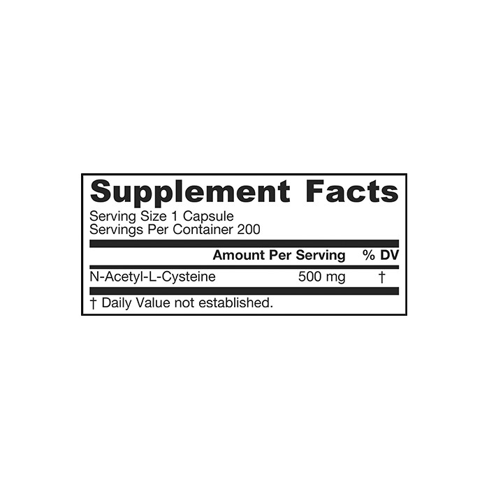 La N-Acetil-L-Cisteína (NAC) es un poderoso aminoácido antioxidante y un precursor en el cuerpo del glutatión antioxidante endógeno crítico. * El glutatión ejerce una variedad de efectos protectores, incluida la desintoxicación y la defensa intracelular contra el estrés oxidativo. * Sustancias conocidas para reducir el nivel de glutatión son el acetaminofén y el alcohol. * NOTA: La ingesta prolongada o elevada puede alterar las pruebas de función hepática sin afectar la función hepática real. Informe a su médico que está ingiriendo NAC si se somete a pruebas de función hepática. Si tiene una condición médica, está embarazada, amamantando, tratando de concebir, es menor de 18 años o está tomando medicamentos, consulte a su profesional de la salud antes de usar este producto.